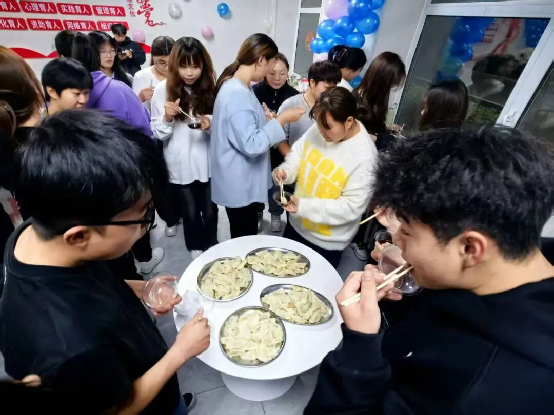 活动前,公寓管理中心精心筹备,采购物资、准备餐具并做好分工,还以气球装饰现场烘托氛围。活动中,师生分工协作,洗菜切菜、调馅包饺、下锅烹煮,现场欢声笑语不断。
