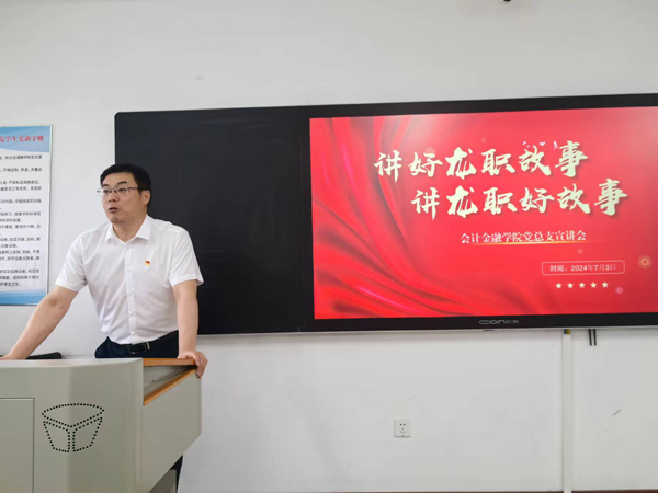 为落实立德树人根本任务,深入推进“铺路石”文化建设,弘扬榜样力量,营造崇尚师德、争创师德典型的良好校园环境和文化氛围,为建党103周年献礼,7月3日,会计金融学院开展“讲好龙职故事,讲龙职好故事”宣讲活动。副校长吴艳秋,党委委员、宣传统战部部长杨东辉参加活动。活动由会计金融学院党总支书记张振和主持。