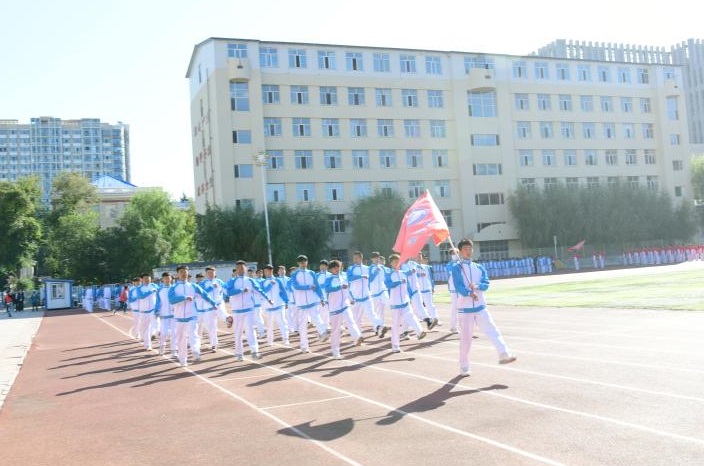 ▲第二校区国旗护卫队入场