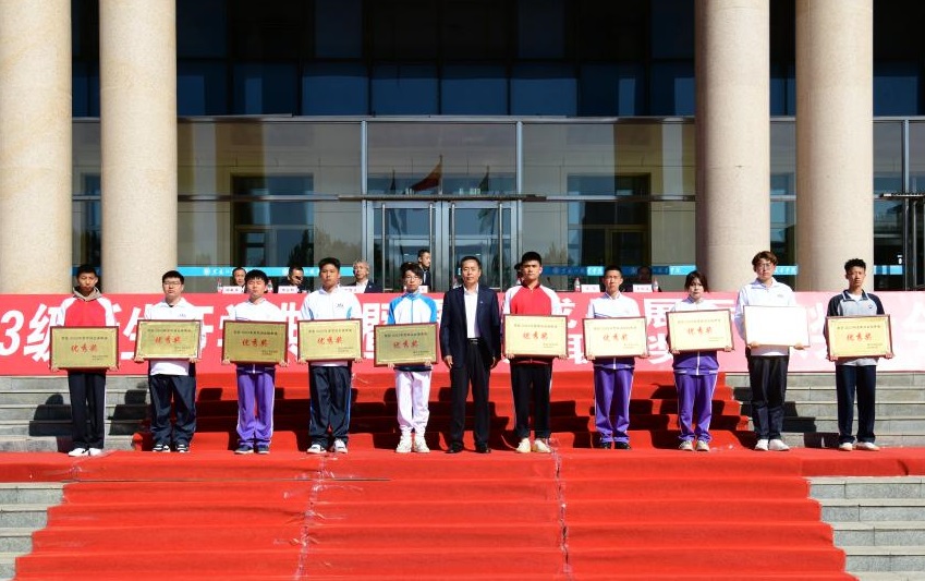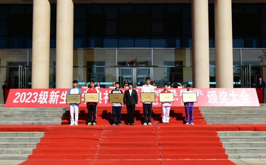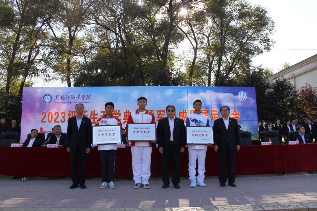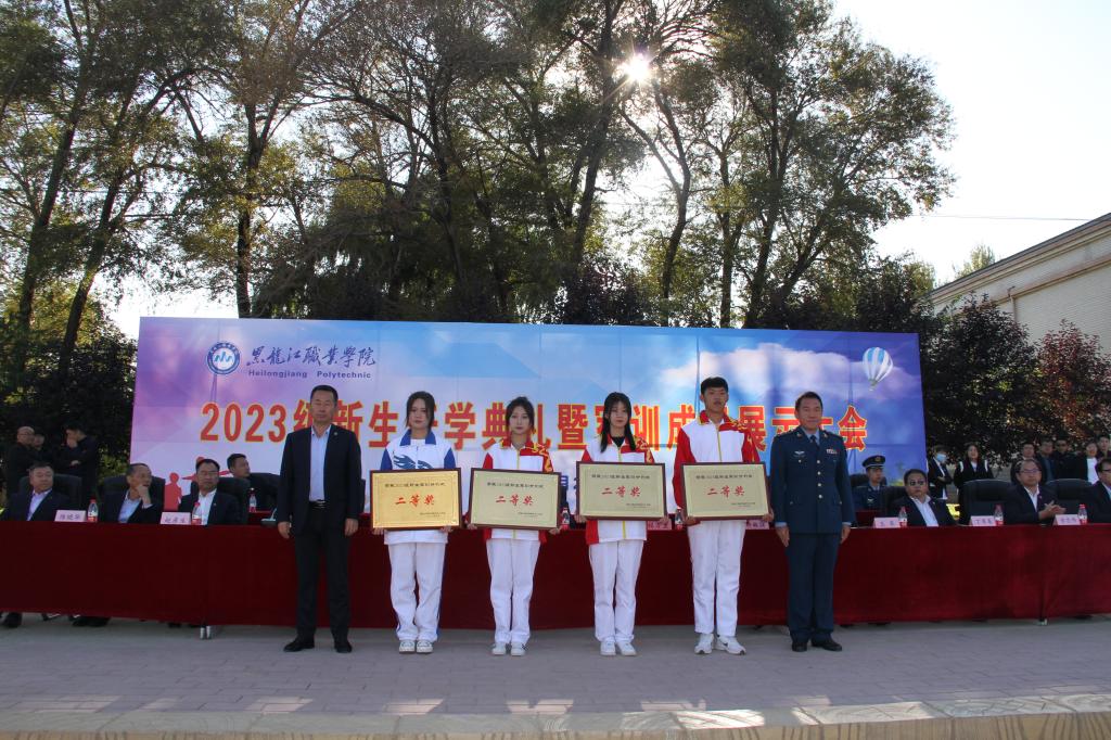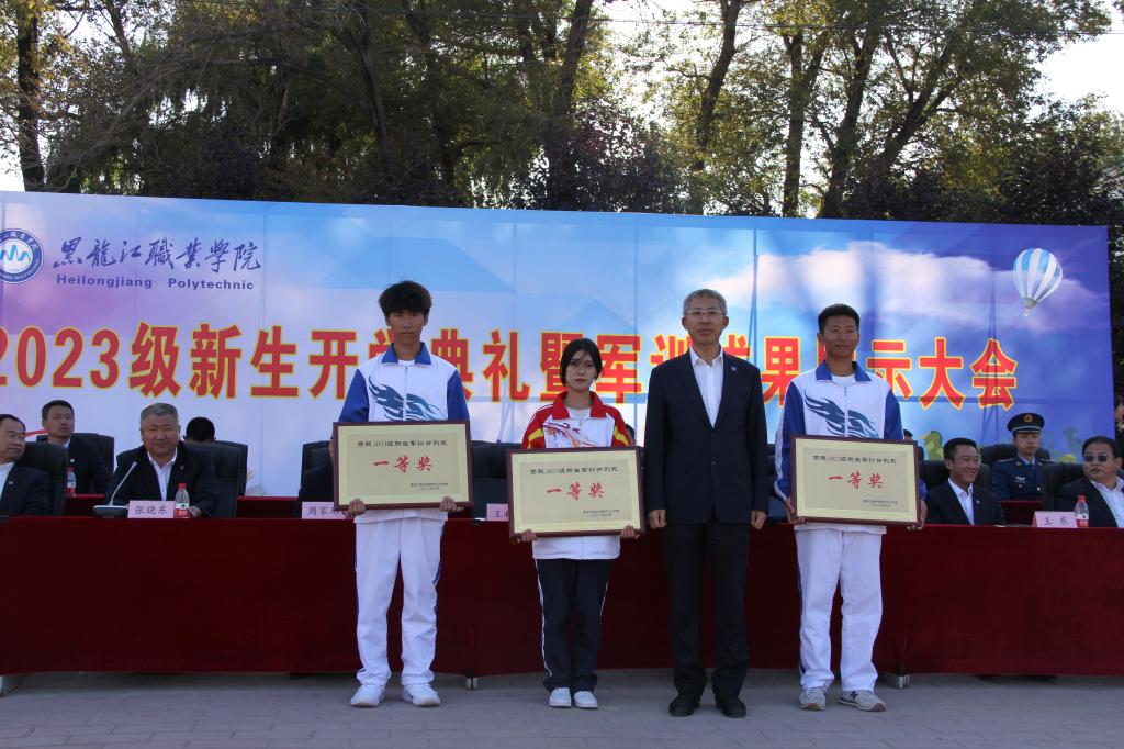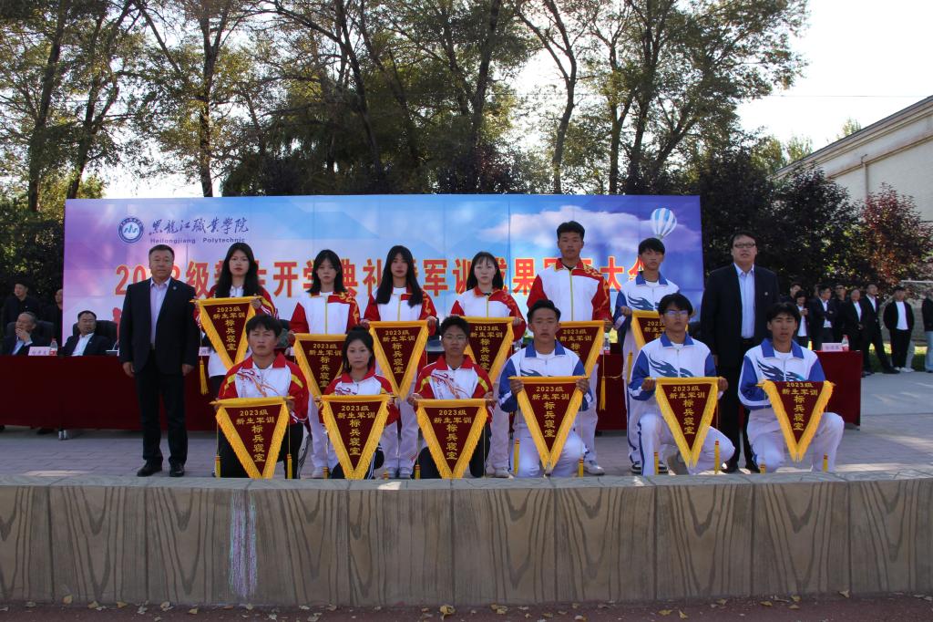 张金龙表示,“龙职”学子们高质量、高标准地完成为期19天的军事技能训练。通过军训,同学们树立了高度的集体荣誉感,磨炼了坚毅的意志品质,展示了青春向上的活力和斗志昂扬的精神,希望同学们把这次军训取得的成果转化为努力学习、刻苦钻研的强大精神动力,进一步提升思想意识,增强身体素质。李伟宣读了《关于表彰2023级新生军训先进集体的决定》,学校领导为受到表彰集体颁奖。