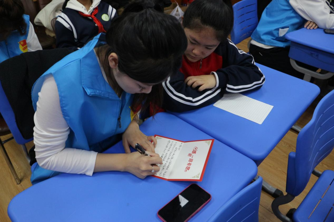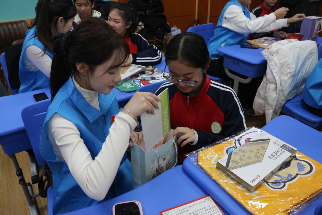 物资赠送环节暖意融融,志愿者为结对学生送上精心准备的学习用品与生活用品,一份份满载心意的礼物,将无形的关爱转化为可触可感的温暖。活动最后,全体人员合影留念,镜头定格下这充满爱与感动的瞬间,为本次活动画上了圆满的句号。