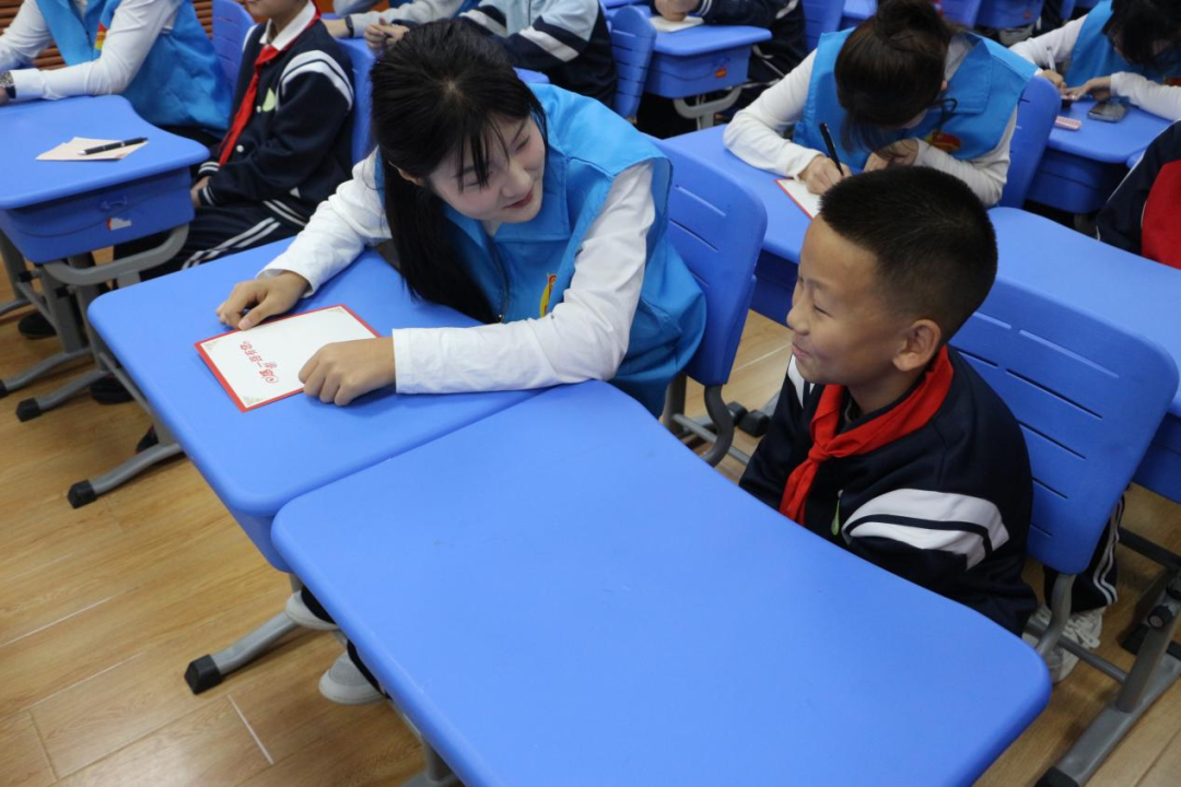 “一对一结对子”环节中,志愿者与困难学生互换手写祝福卡片、互留联系方式,在真诚交流中明确了后续学业答疑、生活关怀等常态化帮扶方向,让短暂的关爱转化为长期的陪伴与支持;集体互动游戏环节趣味十足,“默契猜词”“你比划我猜”等经典游戏迅速拉近彼此距离,欢声笑语中,信任与默契悄然升温。