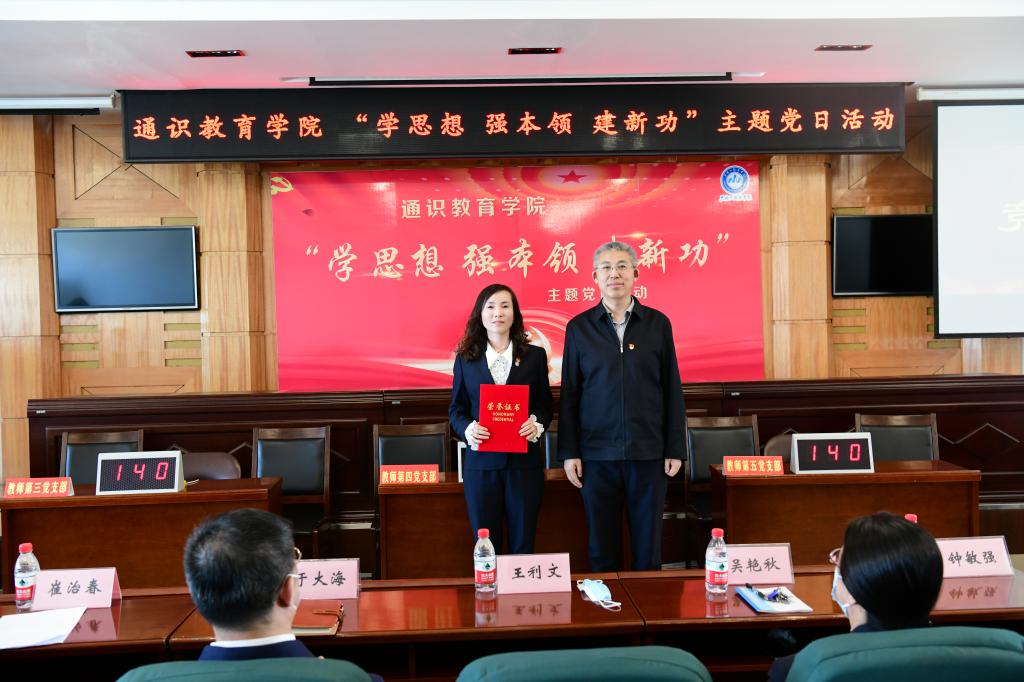 ▲党委委员、副校长吴艳秋为获得“专题知识竞赛”三等奖的代表队颁奖