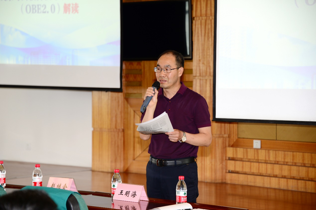 会上,王湘玮、杨井坤、黄雨鑫、李晓松和于德洋等五位教师从课程开发设计、课堂教学实施、特色经验不足、改革实施、改革成效等方面分别介绍了通识类课程、专业基础课程、专业核心课程、专业拓展课程和活动课程五种类型课程的改革情况和取得的经验。王晓典对OBE2.0的工作任务和实施内涵进行了解读。