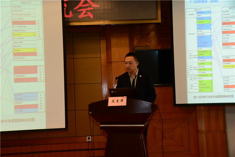 电气工程学院教学院长田浩鹏从技能大师工作室、学生专业社团、国家级大赛、国家发明专利四个方面介绍专业特色,从教学时间分配、教学评量多元、教学成果凝练等六个方面剖析存在的问题和持续改进的具体方法;食品药品学院欧阳慧英以持续改进三回圈模式的改革经验为切入点,例举课堂教学信息化、多元化,实训项目生活化等4个实例,介绍生物制药技术专业在课程改革中取得的初步成绩;工商管理学院王艳通过介绍现代物流课程的顶点课程的设计与实施,详细阐述从课程设计、课程实施到课程取得的效果所总结的经验,及反思课程存在的问题和下一步的解决办法;建筑工程学院院长范海波以建筑识图与构造课程为例,从职业标准入手确定课程目标和模式,借助任务中介变量获得工作知识,克服以任务为中心简单重组原有学科知识,提高学生职业能力;农牧工程学院杨井坤以职业能力培养为核心,与行业、企业紧密合作,结合岗位实操特点,融入“OBE”教学理念,依据专业人才培养目标及能力指标进行课程开发;会计金融学院王欢以评量贯穿整个课程的设计理念,采用反向设计正向实施的教学方法,有效推进课程改革。