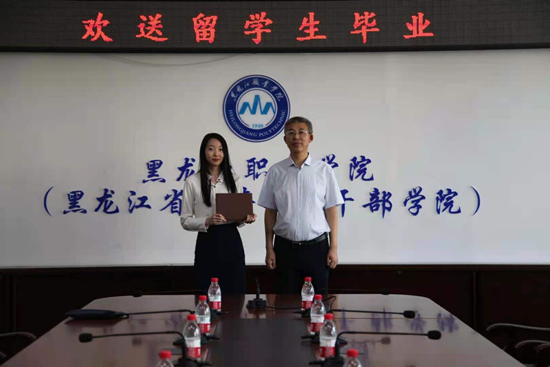 学校领导祝贺KHON IULIIA顺利毕业,并获得升入本科学校哈尔滨师范大学国际汉语教育专业继续学习的机会,对她提出殷切希望:毕业是结束也是开始,结束之前的生活,开始人生新的征程。再次开学,你将认识新的朋友,开始新的生活,继续加深对中国文化的了解,做文化交流的“使者”。旅游与人文艺术学院专业教师对KHON IULIIA在校期间学习及表现给予充分肯定和高度评价,鼓励她再接再厉,继续努力,再攀高峰,并祝愿她在新的学校学有所成,前程似锦!
