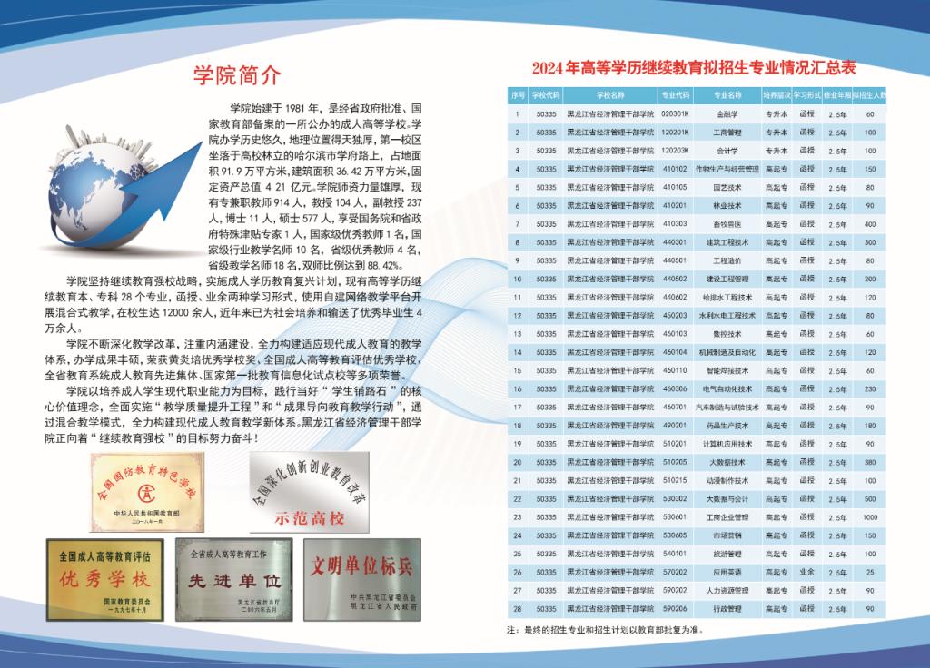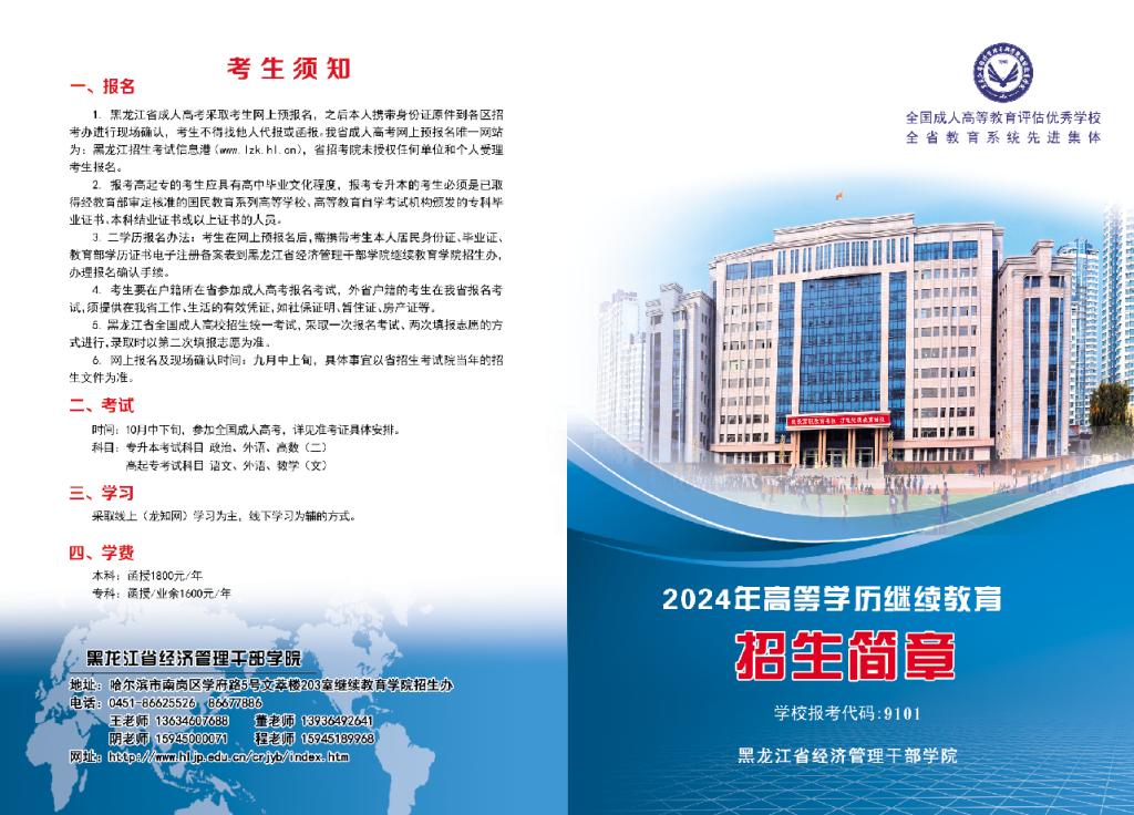 黑龙江省经济管理干部学院2024年高等学历继续教育招生简章