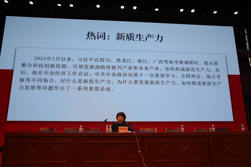 开班式后,培训班进行了第一讲,由KY开元集团官网入口马克思主义学院院长陈桂香教授为学员作题为《新质生产力的科学内涵和发展路径》的报告。