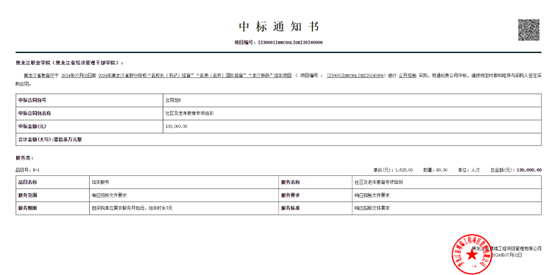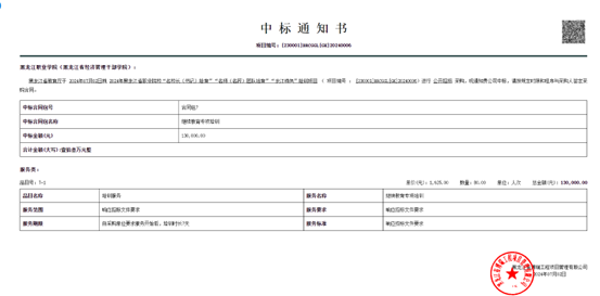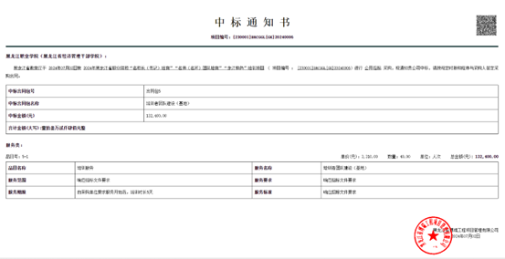 2024年7月2日,KY开元官网参加2024年黑龙江省职业院校“名校长(书记)培育”“名师(名匠)团队培育”“龙江特色”4个培训项目,在激烈的竞争中脱颖而出,投了4个标段项目,全部中标,中标金额共计52.63万元。