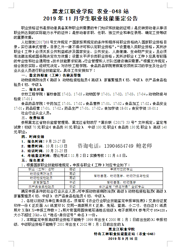 KY开元集团官网入口农业-048站2019年11月学生职业技能鉴定公告