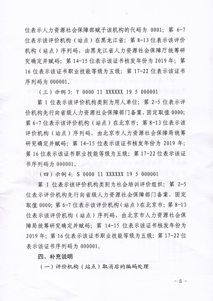 人社部关于印发《职业技能等级证书编码规则(试行)》和《职业技能等级证书参考样式》的通知