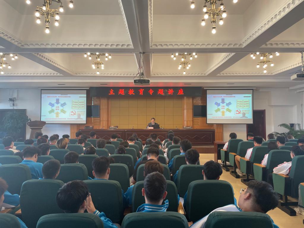赵彦生以“什么是主题教育”展开讲座,跟学生代表们一起探讨在学习生活中怎样用实际行动来践行主题教育。他勉励同学们要志存高远,做有理想的有志青年学子;功成有我,做敢担当的有责青年学子;脚踏实地,做能吃苦的有成青年学子;顽强拼搏,做肯奋斗的有为青年学子。要牢记总书记饱含深情的嘱托和期望,激励广大青年担当起党和人民赋予的历史重任,每一位青年人都能成为社会主义发展事业的中流砥柱,为实现伟大目标而提供不竭的动力源泉。