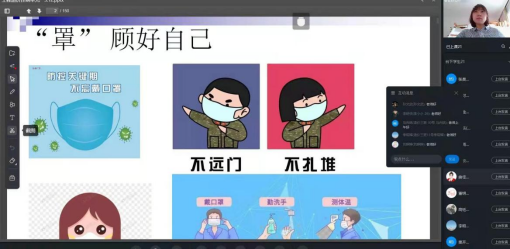 每次课前我都会和学生们分享最新的疫情新闻,关心学生所在区域的疫情状况,时刻提醒疫区学生不出门,少出门,戴口罩,不聚集,让学生感受到虽然与老师少了面对面的交流,但老师和学校对他们的关心分毫不减,仍然把大家的生命健康安全放在最重要的位置。