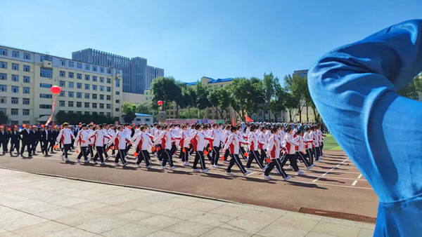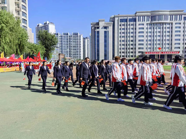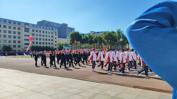 开幕式上,我院师生迈着坚实有力的步伐,伴随着铿锵有力的口号声,向着属于我们的胜利进发!