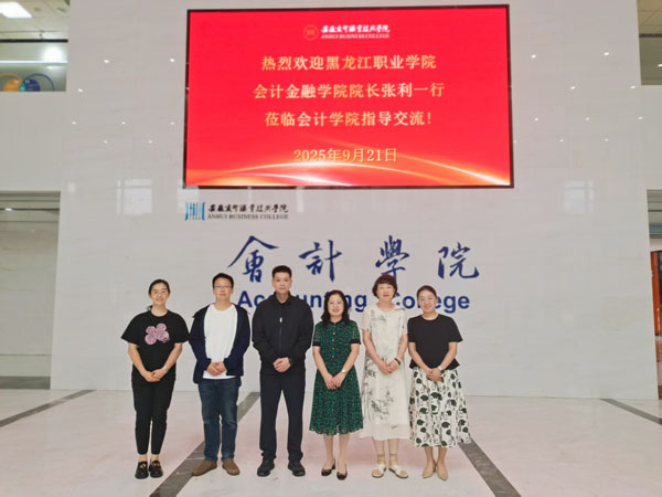 2025年9月21日,会计金融学院院长张利带领学院技能大赛指导教师杨继杰、王欢、孙海涛、齐星辰、李成才赴安徽商贸职业技术学院会计学院开展调研交流活动。安徽商贸职业技术学院会计学院院长鲁学生、财务管理教研室主任陈云磊、国金指导教师夏菊子、马静等接待并参与交流研讨。