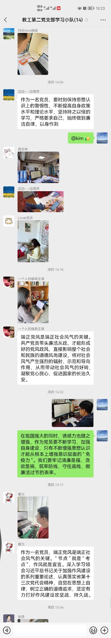 教师第二党支部在微信群中交流心得时表示,我们要心有所畏,言有所戒,行有所止,不忘党的初心使命和为人民服务宗旨,做一名廉洁自律的合格共产党员!