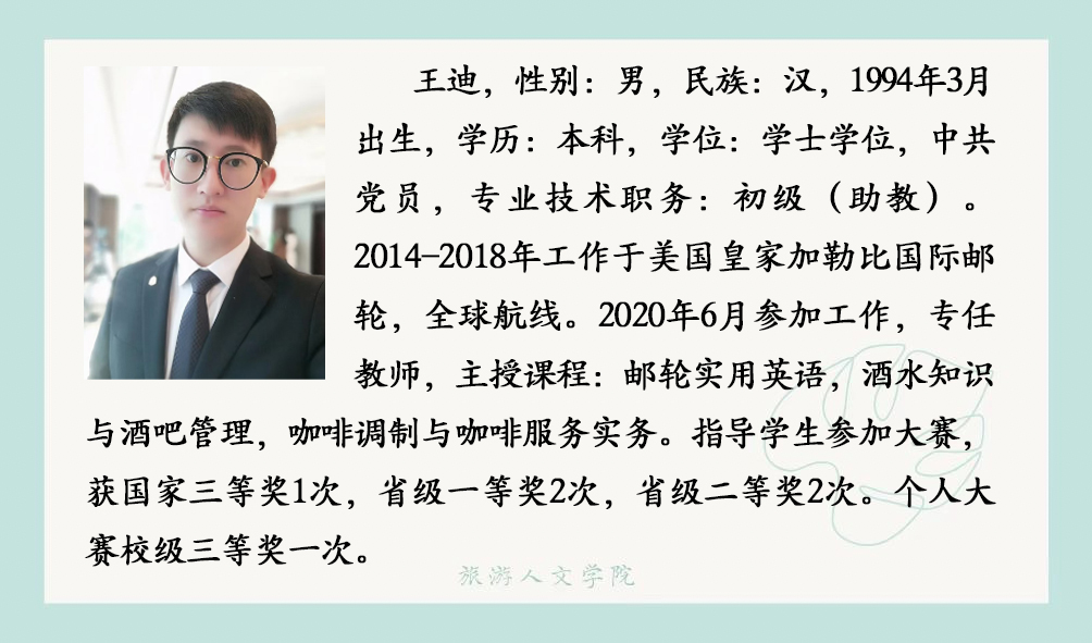 酒店管理与数字化运营专业目前拥有专任教师7人、教授1人、副教授1人、讲师 4人、助教 1人;具有硕士学位 5人。专任教师中均具有高校教师资格,双师素质教师占100%,其中 7人全部拥有国家咖啡培训师证书,3人拥有国际酒店管理注册导师证书,7人拥有 1+X 职业技能等级证书培训教师资格;骨干教师中,有“五一劳动奖章”获得者1人,原五星级酒店人力资源总监1人,原皇家加勒比邮轮员工1人。同时配备兼职教师5人,均为高星级酒店中高层管理者,拥有多年酒店运营管理实战经验,涵盖前厅、餐饮、人力资源管理等核心领域,具备极强的实践教学指导与行业资源对接能力。