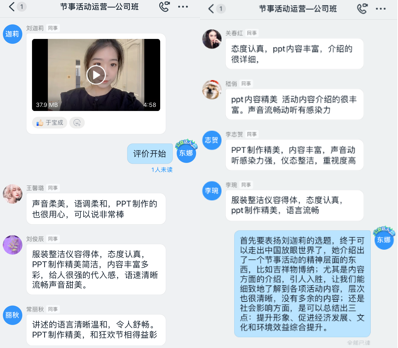 学生能运用节事活动策划的基本工作流程进行节事活动战略规划、板块内容策划,并形成阶段性成果。在不能面对面交流的情况下,通过让学生录制视频的形式进行任务展示,对学生的总结、分析、表达能力进行检验。目前来看,学生的各项能力均有一定提升。