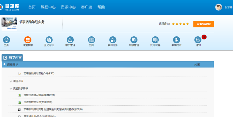 资源学习,教师发布学习任务与相应问题,学生在国家会展资源库进行微课学习,课程统计让教师能够及时了解学生学习进度。