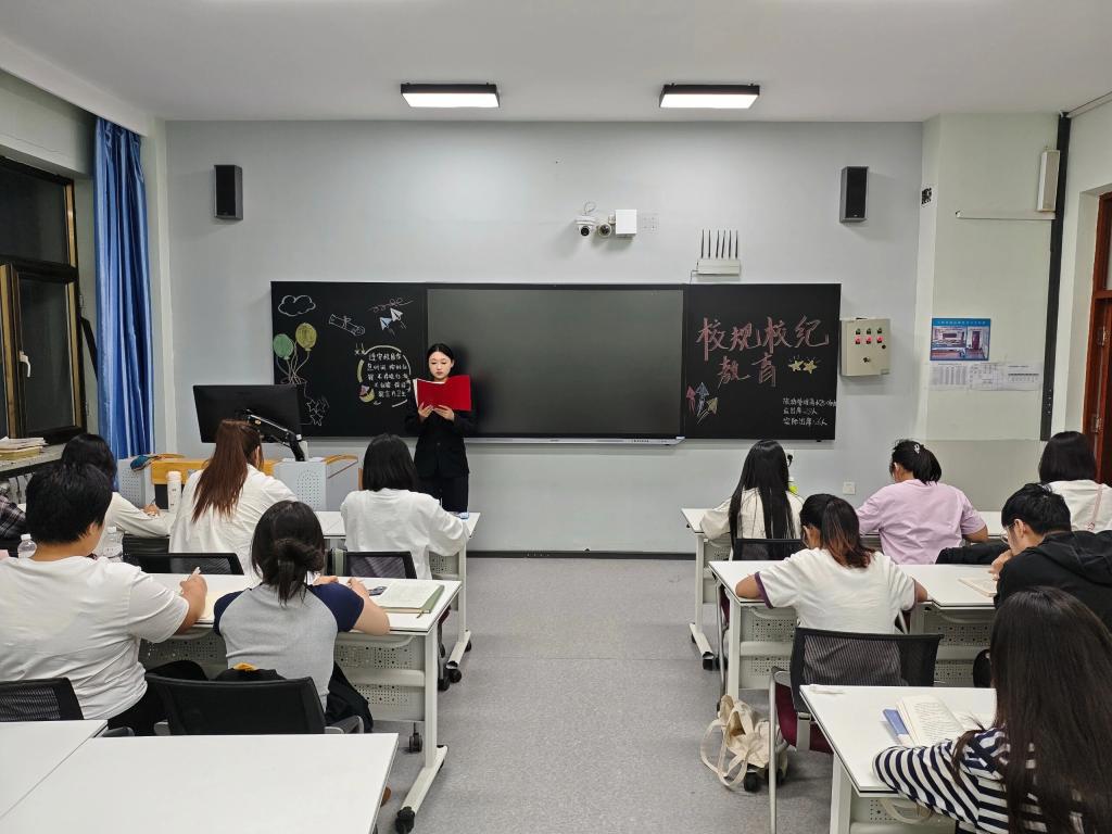 为进一步增强2025级新生的纪律意识、规范行为习惯、营造优良学风,帮助新生尽快适应大学学习与生活,9月7日晚,旅游人文学院组织全体新生班级开展以“校规校纪宣传教育”为主题的“开学第一课”特色晚自习活动。