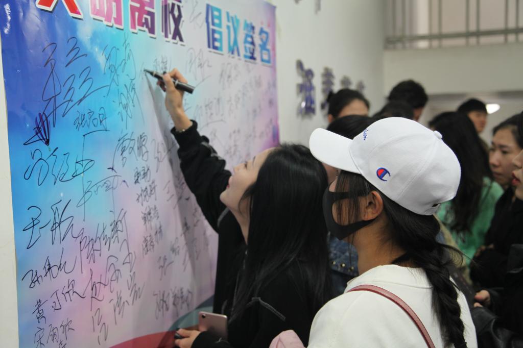 本次活动参与的学生人数达300人左右,共计收到260件各种闲置物品,有衣物、体育用品、课外书籍等,种类繁多。有的学生还在捐赠物上写上了意味深重的赠语,大家还纷纷在签名墙上留下了自己名字。