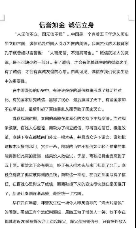 诚实守信,是中华民族的优良传统和当今社会需要大力弘扬的道德规范。为弘扬社会主义核心价值观,落实立德树人根本任务,在学校形成诚信的校风、学风,我院于5月份开展了主题为“诚信立身 ,诚信为本”的征文比赛活动,让我们来看看同学们的风采!