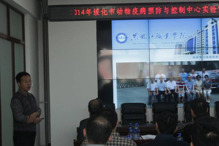 2014年11月10~12日,哈尔滨强牧动物疾病防治有限公司吴东滨、蔡皓璠、吴立君一行三人应绥化市动物疫病预防与控制中心邀请,为该中心举办的“2014年绥化市动物疫病预防与控制中心实验室技能培训班(第1期)”开展了为期两天的培训授课。