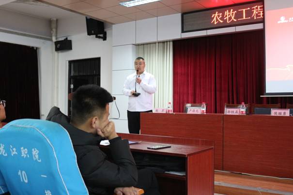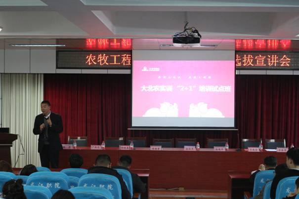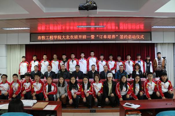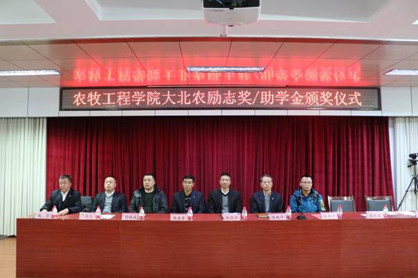 2017年11月10日晚6点,农牧工程学院与大北农集团在二号教学楼六楼会议室举行了“大北农励志助学金”发放、2017级大北农班开班仪式和2016级学生宣讲面试活动,大北农集团东北大区人力市场部总监谷庆年、大北农集团东北大区黑龙江区基地总经理石成金、大北农集团东北大区黑龙江行政部总监郭铁赢、大北农集团东北大区吉林行政部总监盛洪健、黑龙江大北农农牧食品有限公司双城办公室经理卢海龙、哈尔滨大北农人力部招聘主管唐赛男、农牧工程学院院长陈晓华、党总支书记侯继勇、副院长赵岩、辅导员宓宪伟、齐欣及2016级畜牧兽医类专业的150多名学生和2017级大北农订单班的29名学生参加了会议。会议由副院长赵岩主持。