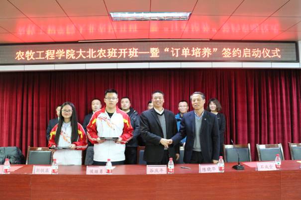 在开班仪式上,谷庆年代表企业致辞,并与陈晓华和学生代表签订了“订单培养”合作协议书,标志着校企合作进入了更深层面和全新的阶段。之后谷庆年又进行了一场激情洋溢的校园宣讲,旨在2016级学生中选拔一批学生,成立新一批“大北农实训班”,宣讲结束后对申请报名的学生进行了现场面试,谷庆年也希望全体学生要学习“大北农人”的创业精神,珍惜机会,刻苦学习,勇于实践,争做“大北农人”,同时对农牧工程学院给大北农的人才支持和人才培养质量给予了高度的评价,衷心希望与农牧工程学院能够在健康、稳定、快速的轨道上开展更深度合作。