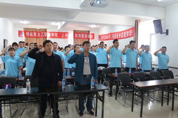 6月11日,由农牧工程学院党总支书记侯继勇和“正邦班”校内班主任宓宪伟老师带队,2015级57名学生参加的“正邦班”开班仪式,在位于黑龙江省肇东经济开发区乐业大道的正邦集团所属分子公司黑龙江片区总部办公地点黑龙江广联农牧有限公司举行。