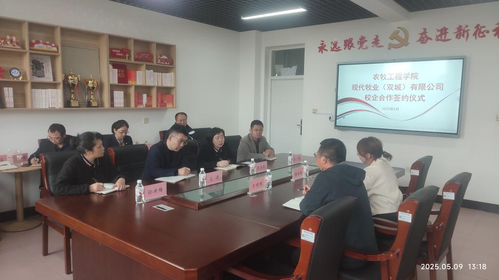 5月9日,农牧工程学院与现代牧业(双城)有限公司签订冠名班合作协议,并举行校企合作签约仪式。学院领导、企业代表及畜牧兽医专业23级学生共同参与,标志着校企协同育人迈入新阶段。