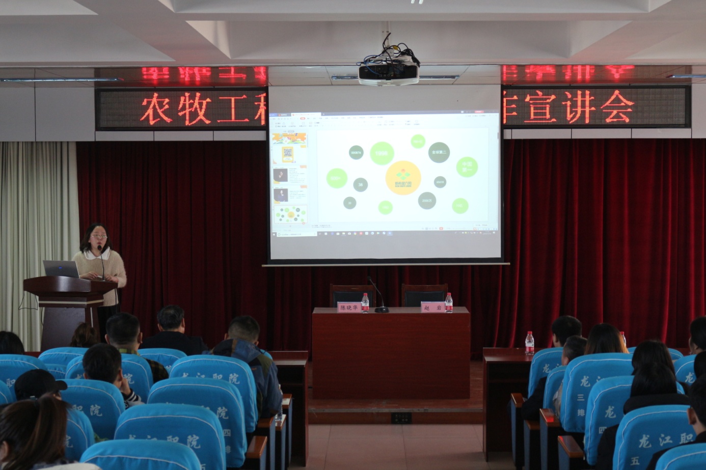 11月15号下午13点30分,农牧工程学院实习就业宣讲会在2号教学楼6楼会议室隆重召开,参加本次宣讲会的企业有黑龙江正邦农牧有限公司、双胞胎(集团)有限公司、新希望六和股份有限公司、正大集团-黑龙江正大实业有限公司、泰来县佳和农牧有限公司、北京米乐动物医院有限公司共6家企业。农牧工程学院院长陈晓华、副院长赵岩出席本次宣讲会,宣讲会由赵岩主持。