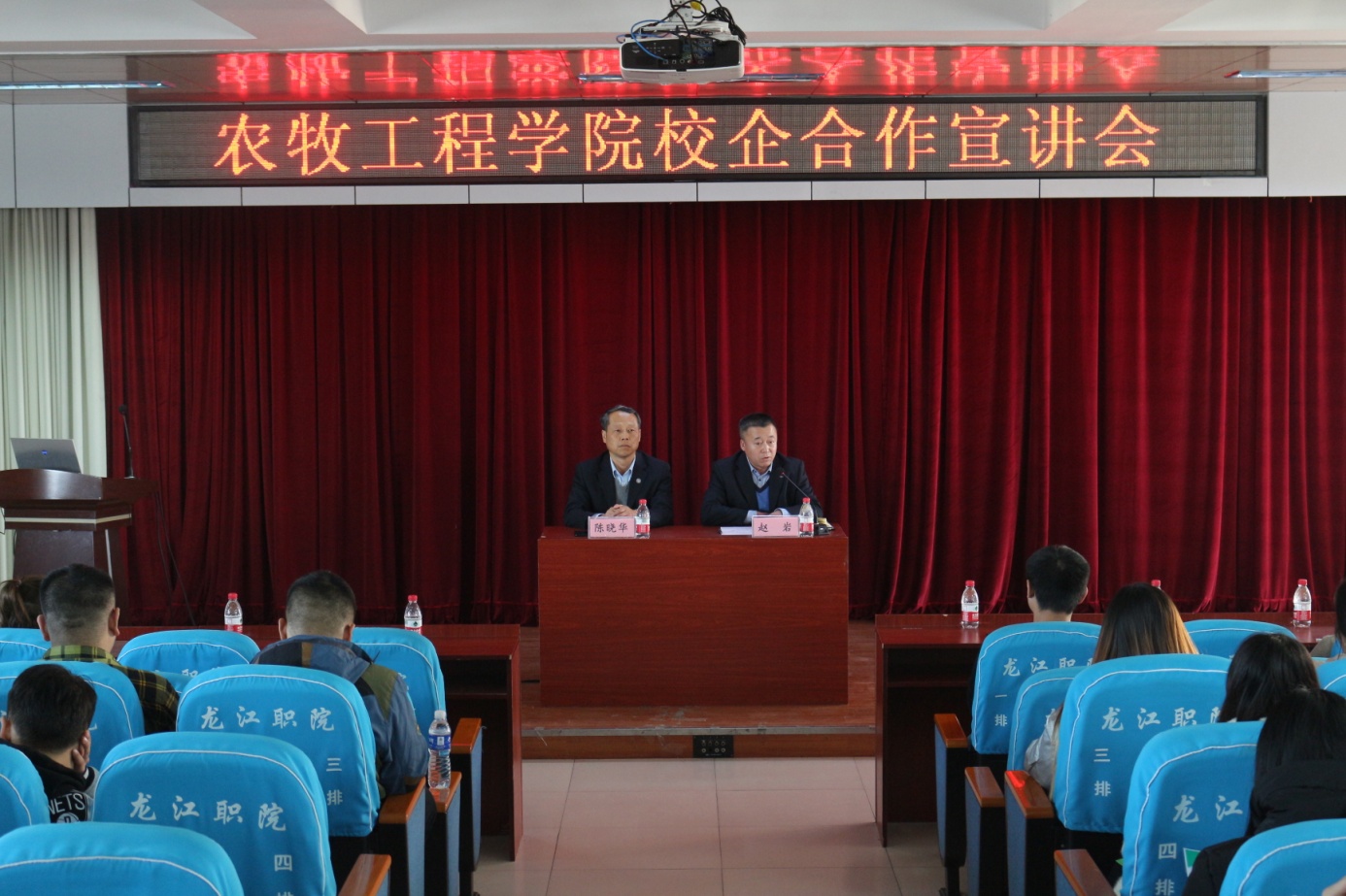 赵岩首先说明了召开本次宣讲会对学生和企业的重要性,为保证宣讲效果和质量,对企业宣讲做了进一步的要求。陈晓华在宣讲会致辞中强调说,“今天遴选的6家企业,有5家与我院有着多年的合作基础,4家是国内500强企业,而且企业技术先进、管理规范、社会责任感强,符合学院校企合作的基本条件,对学生将来的实习就业具有一定的保障。”