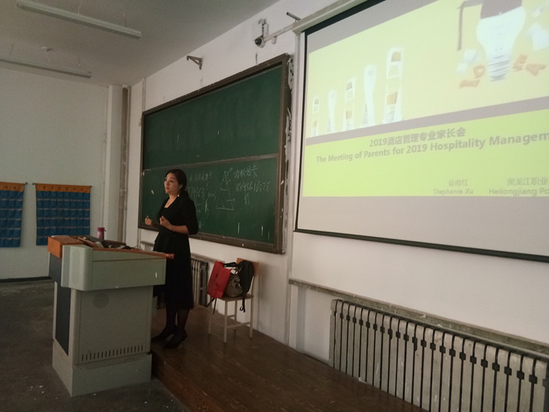会议首先由徐德红介绍酒店管理专业概况;随后,她从专业人才培养目标及模式方面进行了深入的阐述;最后介绍了专业校企合作单位及实习就业情况,并代表学院向家长承诺,同时家长也在下发的新生家长告知书中签字承诺。