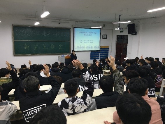 2020年10月15日下午18点30分,2020级新生专业介绍会在清华楼西J202准时开始。由建筑工程技术专业负责人景铎老师和企业专家杨晓秋作为主讲人。全体建筑工程技术专业大一新生和辅导员李鉴奇老师参加了介绍会。