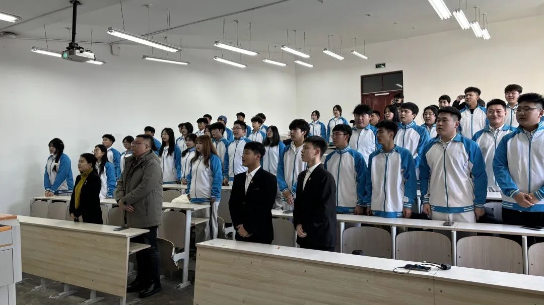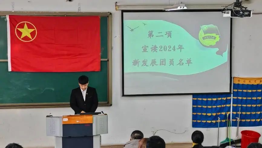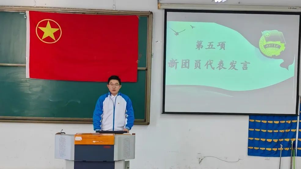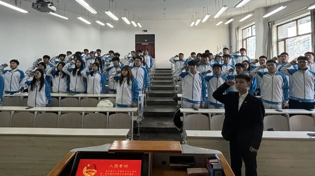 仪式现场气氛严肃而热烈。团旗飘扬,团歌激昂。新团员们整齐列队,眼神中透露出坚定与自豪。团总支书记张钧铭在最后的讲话中,希望新团员们坚定理想信念,以身边的优秀学生党员为榜样,立大志、明大德,将个人梦想融入国家发展、民族复兴的伟业中。
