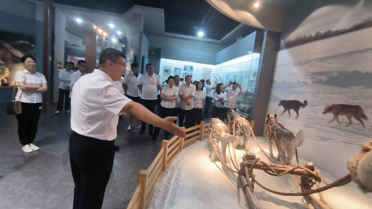 随后,在黑龙江大学党委常委、宣传部部长杨其滨的引导下,党员们走进馆藏文物展厅,共同追溯鄂伦春族与赫哲族人民的历史发展,探寻白山黑水间的历史变迁。从鄂伦春族古老的狩猎工具,到赫哲族精美的鱼皮服饰,每一件文物都诉说着鄂伦春族独特的文化与智慧,展现了中华民族多元一体的深厚底蕴。党员们在参观中深刻认识到,各民族在长期的历史发展中相互交流、相互融合,共同创造了灿烂的中华文明。