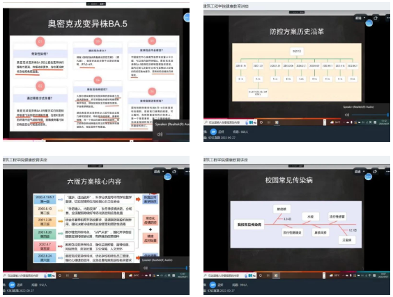 通过此次2022级新生健康教育专题讲座,增进了我院新生对校园疫情防控和各类传染疾病预防知识的了解,加强了我院新生的自我保护和防范意识,使我院新生树立了正确的生活观念和健康的生活方式,建筑工程学院将持续推进大一新生的身体健康教育,为新生未来的成长成才铺路。