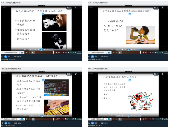 随后孟妍校医在物质滥用与健康的方面也为我院新生展开了讲解,讲解了吸烟和酗酒的危害以及如何防范毒品等知识。
