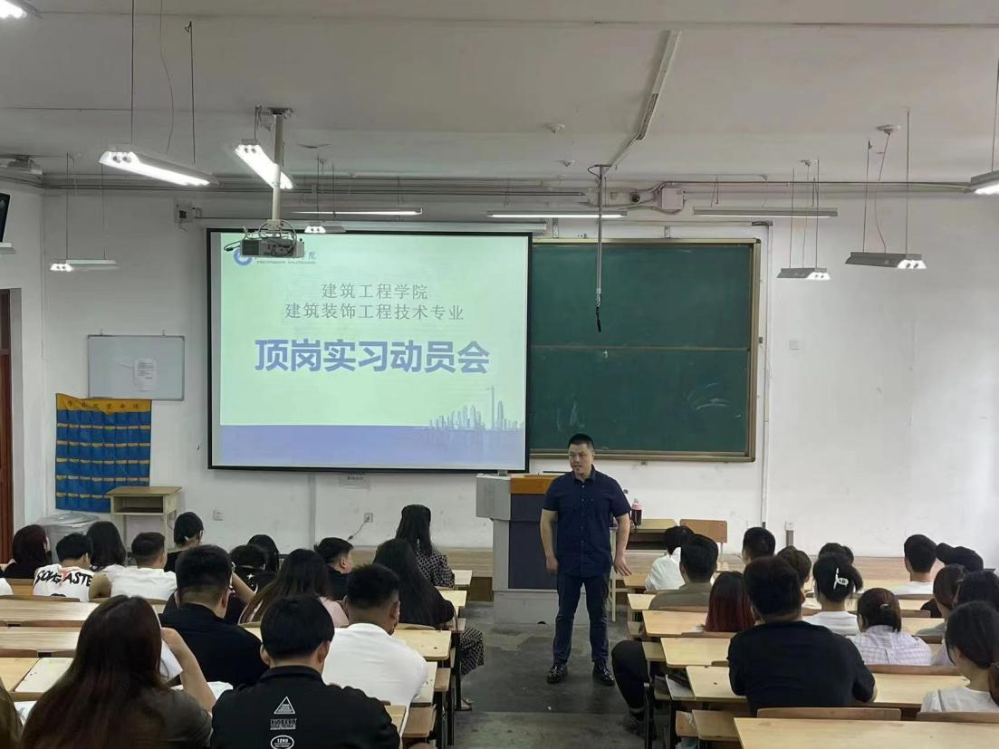 为落实学生顶岗实习管理规定工作,拓宽应届实习生就业渠道,提高就业质量水平,6月28日上午,建筑装饰工程技术专业召开“顶岗实习动员会暨实习企业见面会”,建筑装饰工程技术专业全体教师,21级全体学生参加本次大会,会议由团队带头人林泉老师主持。