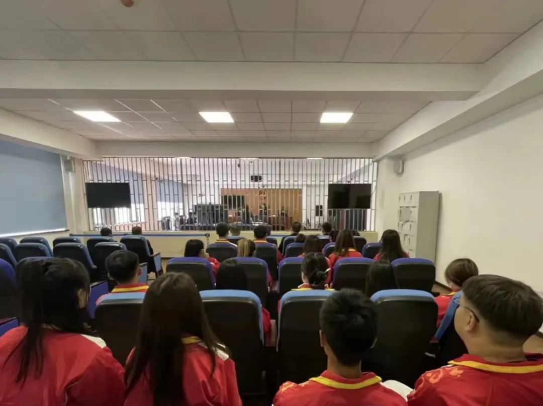 随后,师生共同旁听了一起刑事案件的庭审。庭审现场,伴随着审判长一声清脆的法槌声,庭审正式开始。被告人是一位00后青年,因盗窃就此断送了自己的大好前程。当听到审判长当庭审判被告人构成盗窃罪,并被判处有期徒刑时,同学们的心灵受到了极大的警示,也真切感受到了法律的公正。现场秩序井然,案件审理过程规范高效。同学们严格遵守法庭纪律,聚精会神地观摩旁听,达到了“审理一案,教育一片”的良好效果。