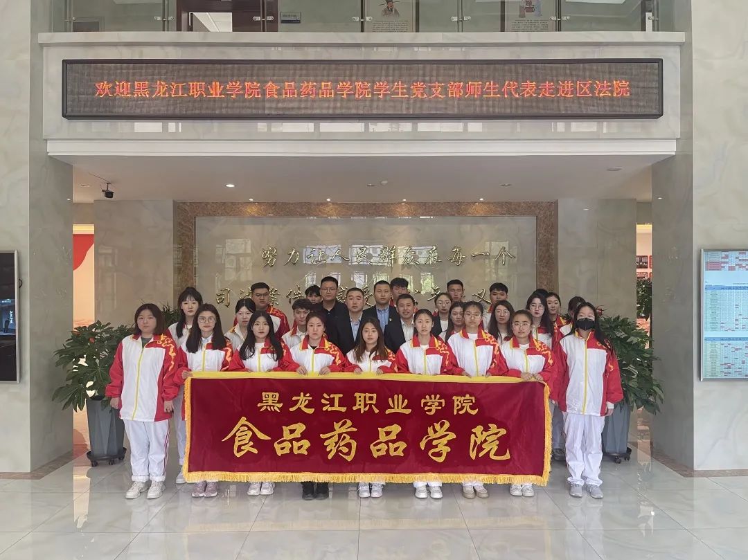 为落实食品药品学院学生党支部开展主题党日活动方案,切实增强大学生的法治观念,为我院学子树立正确的世界观、人生观、价值观。食品药品学院党总支副书记高财智、学管办主任宓宪伟及张宇航、宋志荣、蒋雨晴三位辅导员老师,于2023年5月17带领我院学子走进双城区人民法院,零距离接触法院工作,感受法律的威严与神圣!