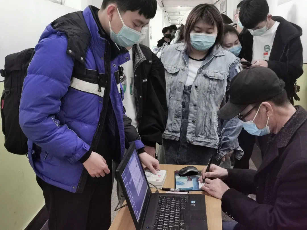 在工作人员的引导下,我院同学有秩序地从学校北门进入学校,体温测量、行李消毒、扫码登记、核酸检测。