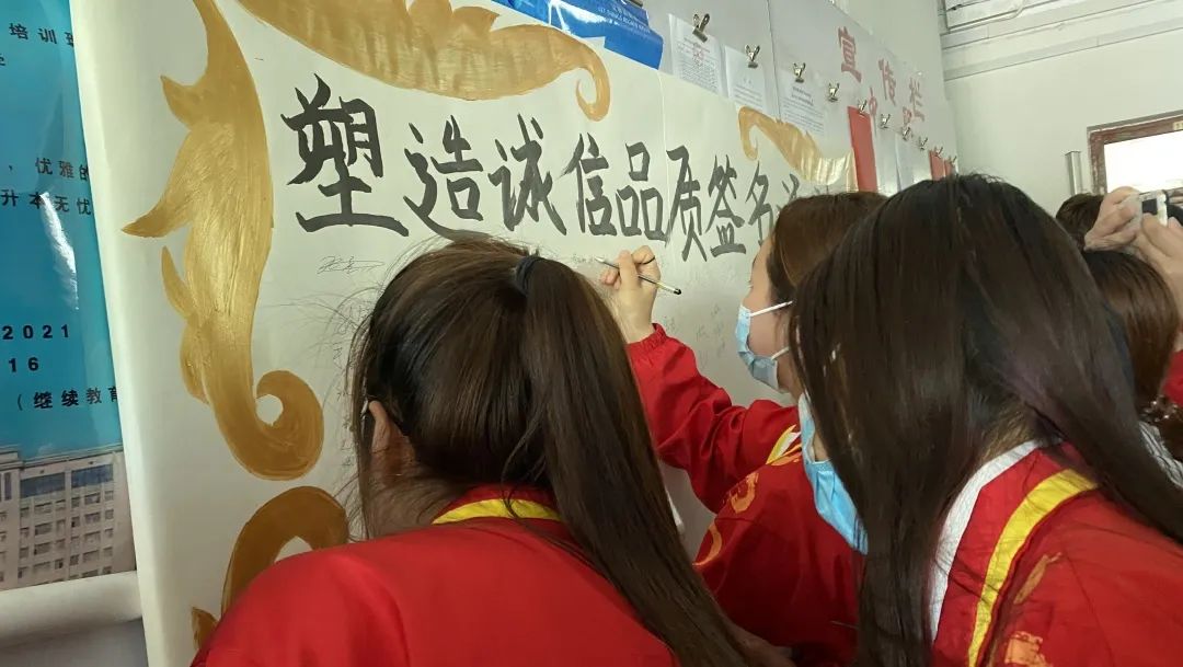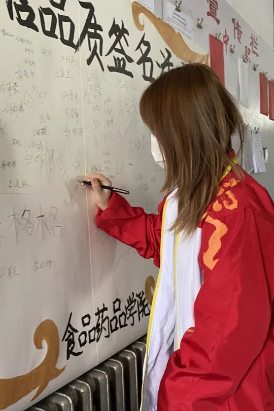 活动现场人头攒动,同学们积极参加,他们相继在画板上签下自己的名字,现场签名的氛围充分体现了食药学子的责任意识和诚信意识。