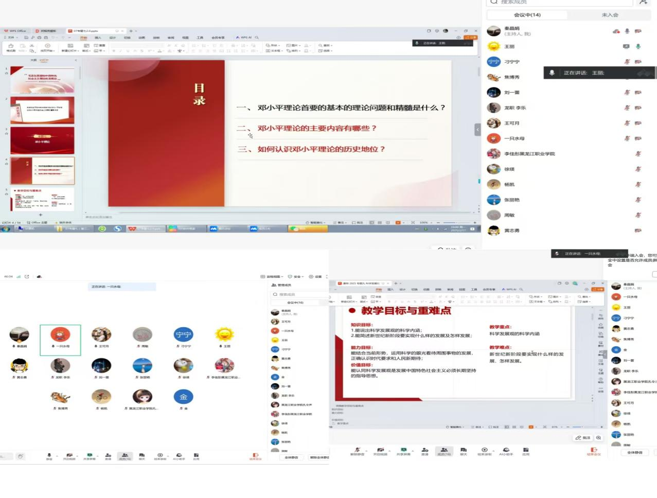 集体备课为教师提供了一个相互学习、共同进步的平台,为今后的教学工作打下了良好的基础。钻研教学需要久久为功,毛泽东思想和中国特色社会主义理论体系概论课教研室教师将以力争讲好每一节课为目标,带领全体授课教师共备提升,助力新学期教学提质增效。