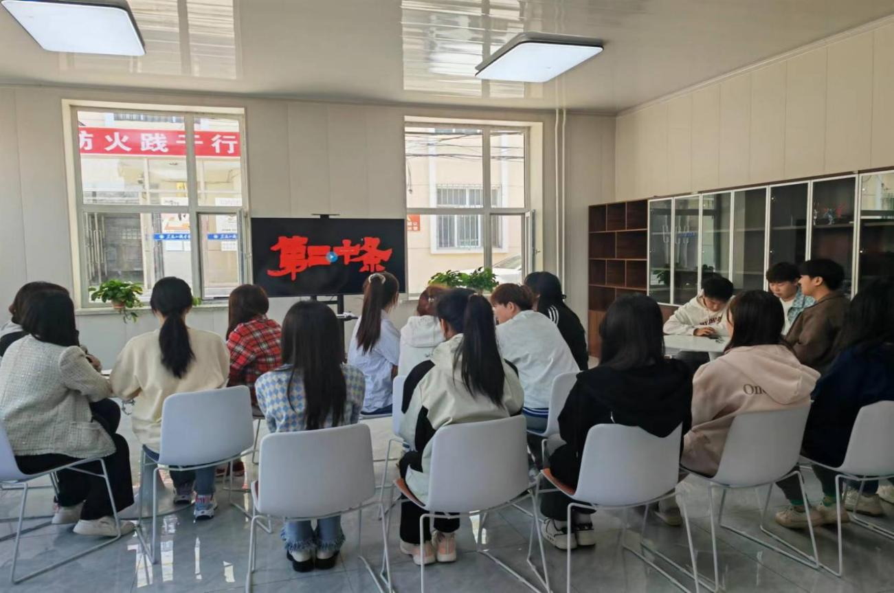 马克思主义学院教师第三党支部党员教师在深入学生一站式社区活动中,为了拉近与学生的距离,寻找到与00后的共鸣,在业余时间带领部分学生在一站式社区活动室观看了热映的现实题材影片《第二十条》,并于4月24日与学生就影片聚焦的“正当防卫”条款进行了深刻讨论。