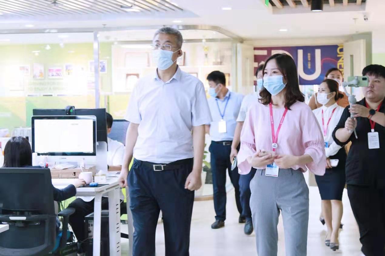 在参观走访过程中,聚能教育相关负责人陪同王院长参观了办公区、党建室、聚能教研院、食堂等,详细介绍了聚能教育的业务发展、战略规划、发展历程等情况。其间,王校长对学生的实习岗位、实习内容、实习收获、实习待遇和安全保障等方面情况进行了询问。