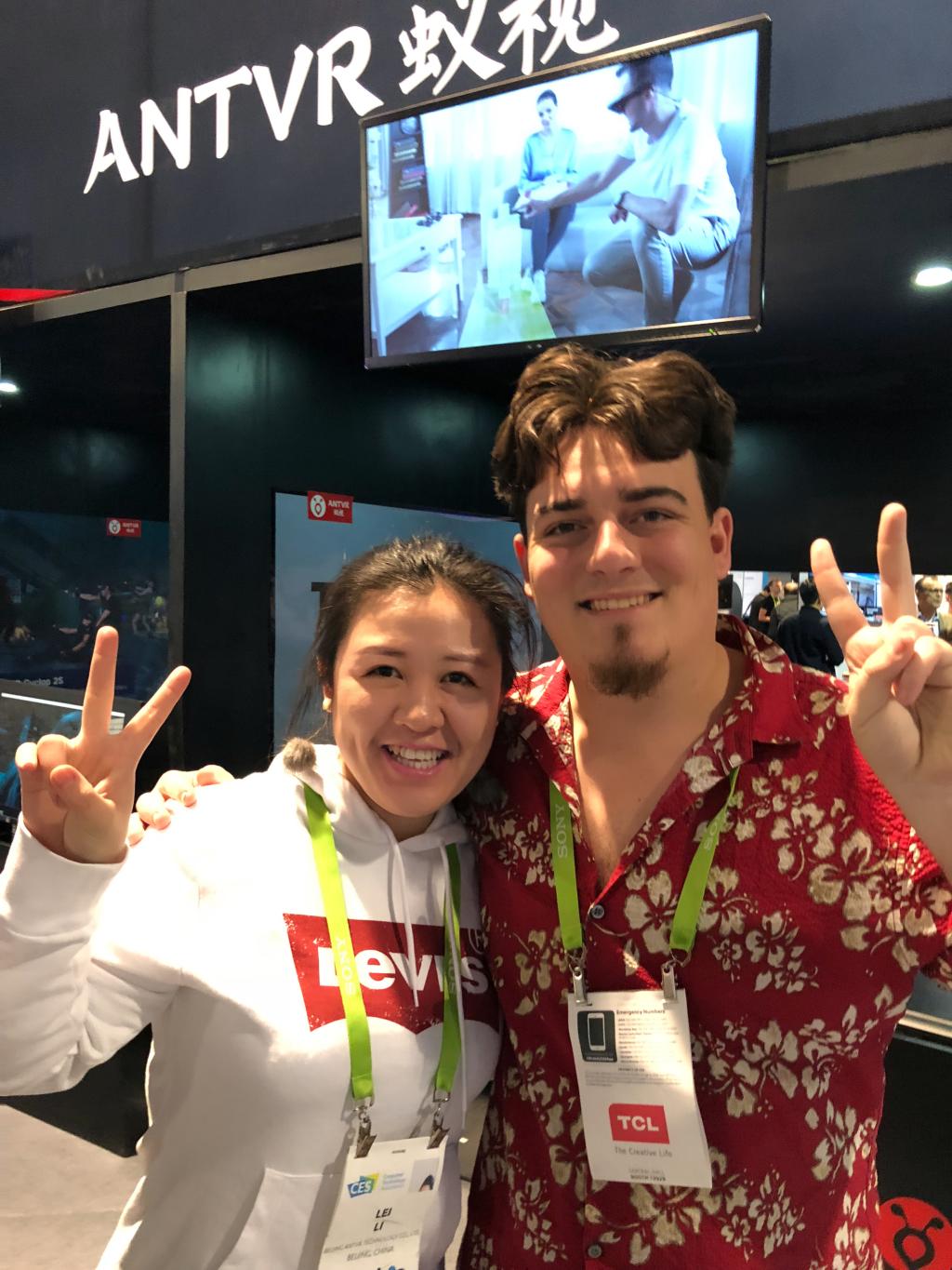 李蕾在美国拉斯维加斯CES展会上与Oculus创始人Palmer Luckey
