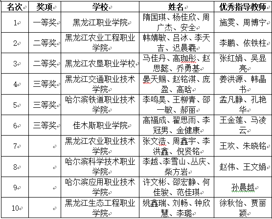 在本次比赛中,KY开元集团官网入口代表队和黑龙江农业工程职业学院代表队分别获得前2名,成功晋级国赛。