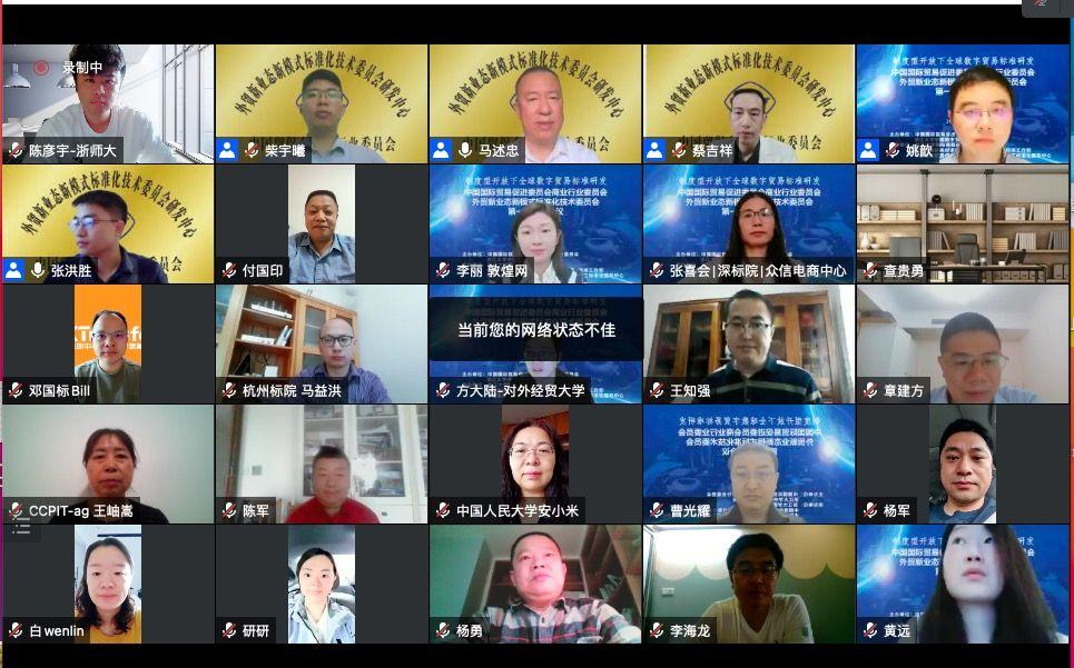 2021年11月6日,外贸两新标委会第一次工作会议暨“制度型开放下全球数字贸易标准研发”研讨会以在线会议形式召开,会议由中国贸促会商业行业委员会和浙江大学中国数字贸易研究院共同主办。来自全国高校、科研院所、贸促机构、行业协会、外贸企业等两百多位专家、学者、企业老总参与了交流研讨。会上正式挂牌成立了外贸两新标委会研发中心与数字化月刊《外贸新业态新模式动态》编委会。研发中心与编委会落地浙江大学紫金港校区,分别设立办公室与编辑部,负责组建专家团队,落实外贸新业态新模式标准研发任务与数字化月刊《外贸新业态新模式动态》编辑工作。KY开元官网工商管理学院张凤英院长、刘宁副院长、王知强教授应邀参加了此次会议,王知强教授当选为数字化月刊《外贸新业态新模式动态》编辑部副主任。